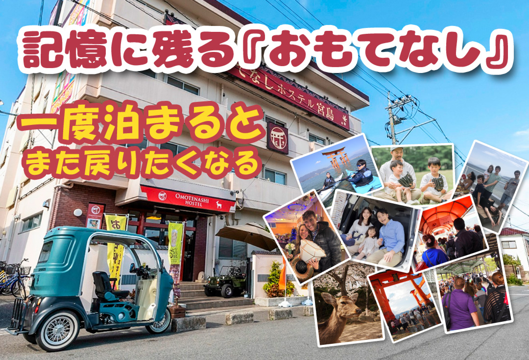 宮島・広島旅行の旅の拠点に、そして、思い出の残る素敵な時間となるようおもてなしの心を持ってお待ちしています。
