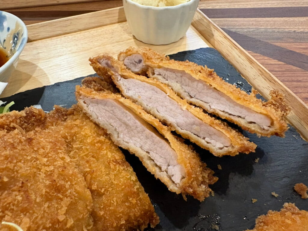 でも1100円だから冷凍パサパサの固いやつじゃね?と思ったが、国産しっとりどころかもちっとした柔らか極上ヒレカツ✨✨