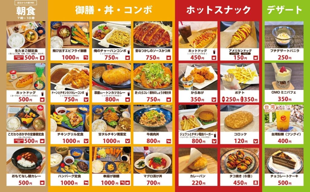 軽食・ホットスナック・居酒屋メニューなどご用意しております。※最新版⓵最新版⓶
